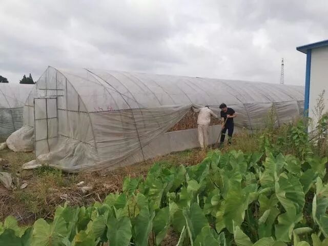 ) v- J* [$ F Y斜桥镇: 斜桥镇创新村农业村干帮助种植户加固大棚。