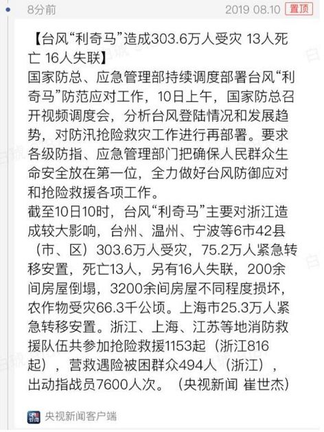 8月10日凌晨1点45分 利奇马以超强台风身份 登陆浙江温岭 “利奇马”目前风速度52米/秒 不仅是今年以来登陆我国最强台风, 对比建国至今登陆浙江的超强台风和强台风 “利奇马”绝对是狠角色 温岭市近15年以来首次拉响防灾警报。 上几张图,大家感受一下 - @) x8 `: {5 t g9 f0 ^