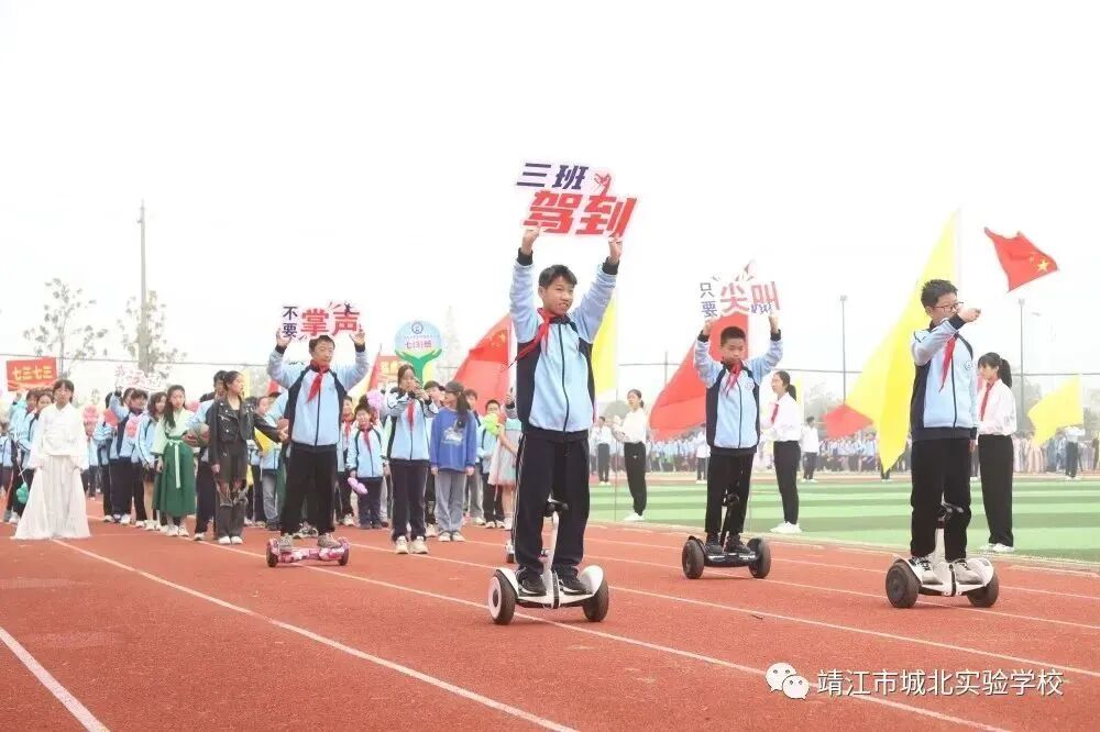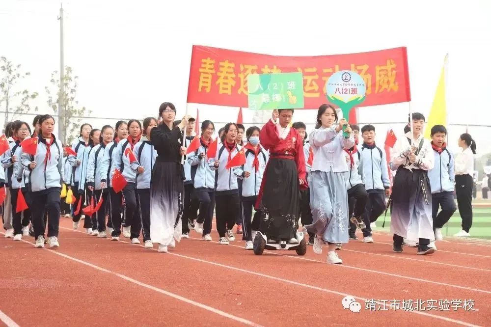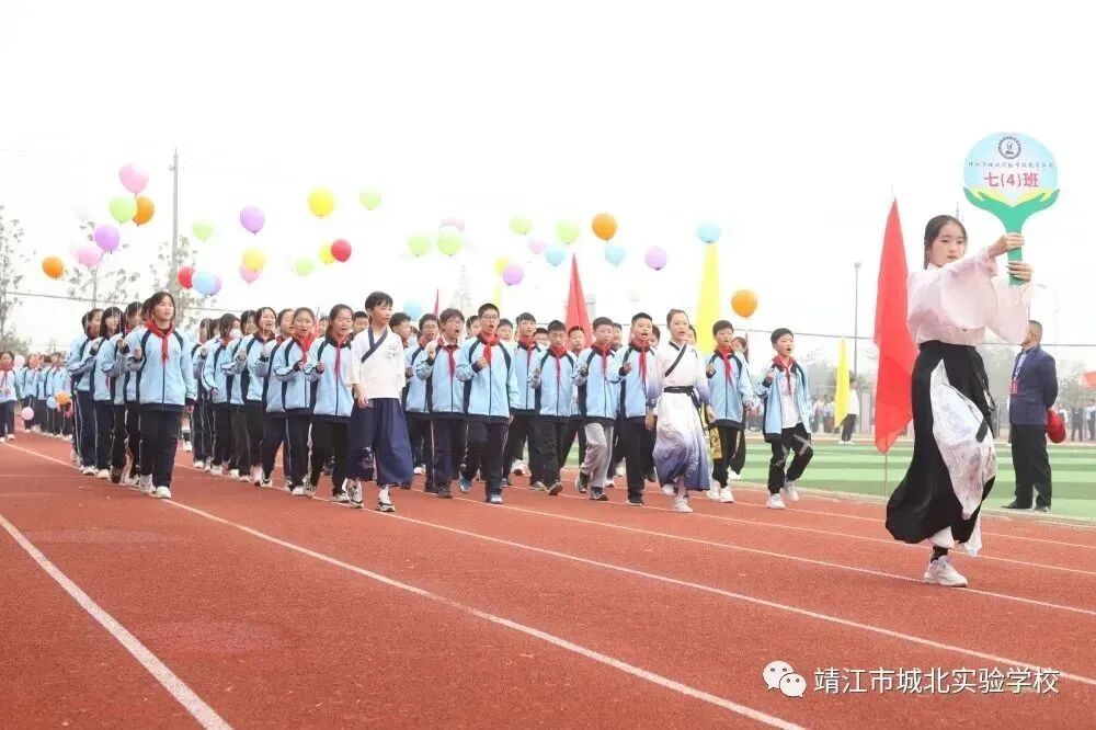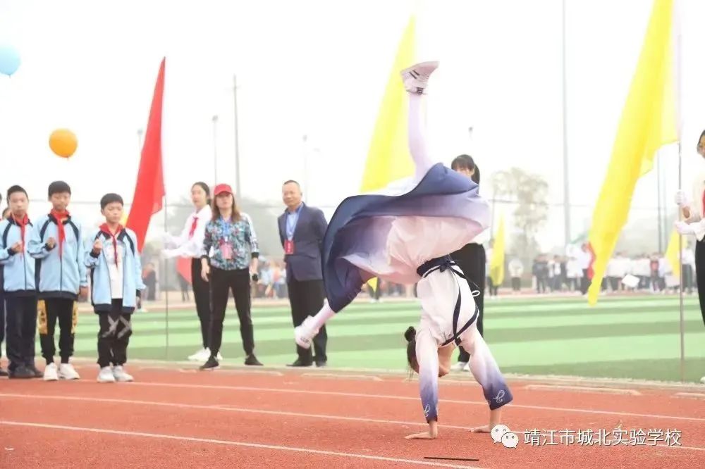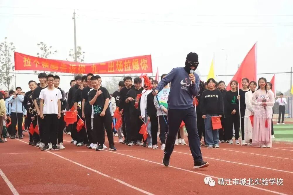 “我宣布:靖江市城北实验学校第二届秋季田径运动会开幕!”大会组委会主任、校长缪文初语毕,全场掌声雷动,一片欢呼。