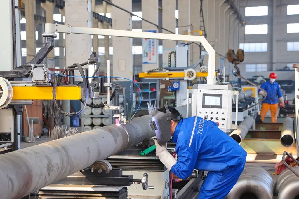 托普工业(江苏)有限公司 是我市专业为冶金 和石化配套的中外合资企业 也是江苏省较早拥有智能铸造产线的企业 全力开工新订单 托普工业排定了 辐射段、对流段、裂解管等工序的时间节点 精心组织、倒排工期、抢抓进度 确保两台20万吨级 乙烯裂解炉高质量完成安装