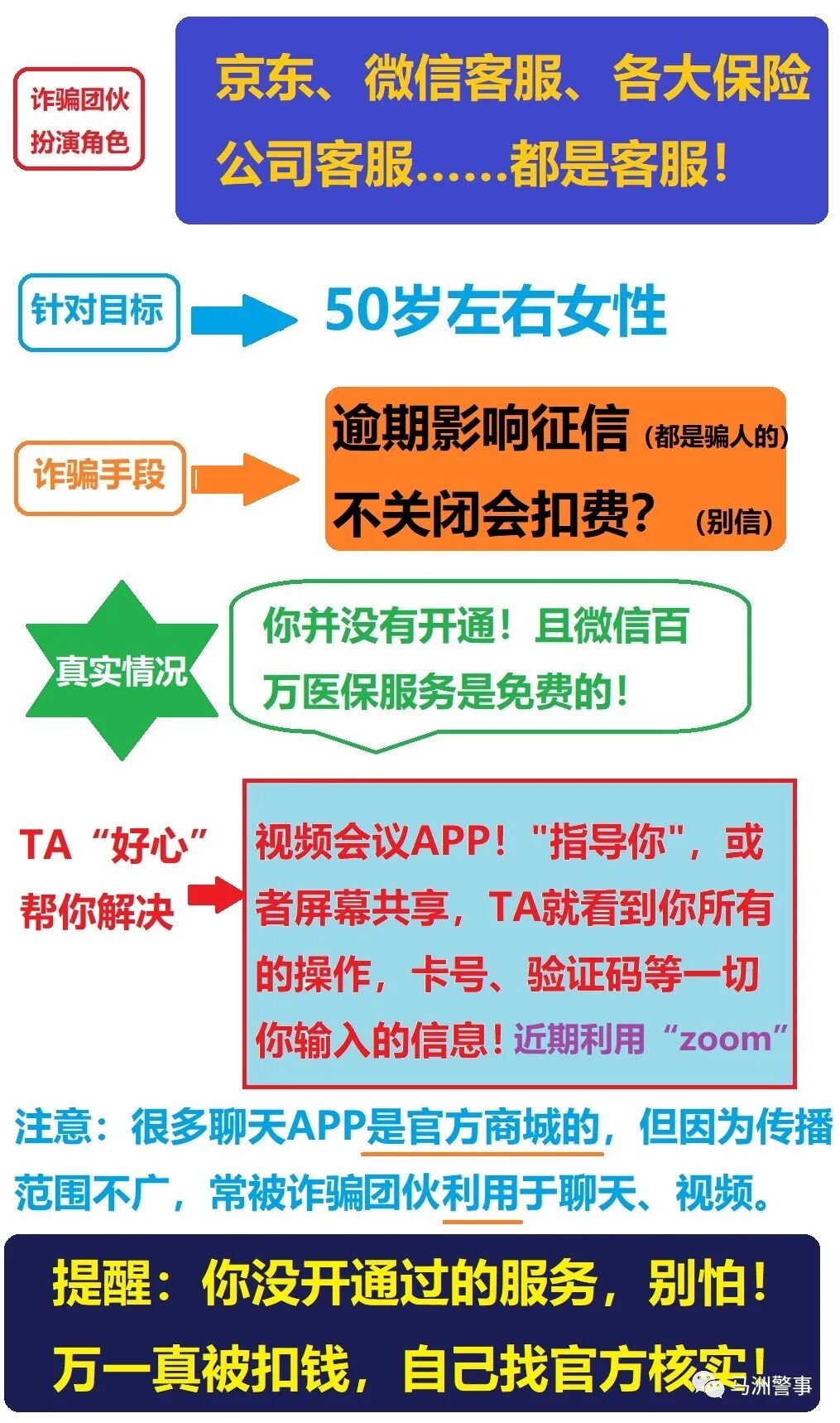 1、请注意陌生来电,所谓“客服”并不一定是真客服。 2、入下载了“ZOOM”等含屏幕共享功能的APP,陌生人要求“共享屏幕”的,一定是诈骗! 3、自称“官方客服”,电话指导办理“影响征信”、“注销账户”“调整利率”等相关业务的,都是诈骗!
