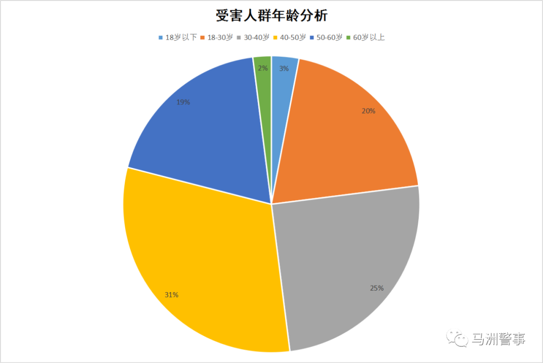 年龄比例:被骗人员中,18-30岁群体34人,占比20%;30-40岁群体44人,占比25%;40-50岁群体54人,占比31%;50-60岁群体33人,占比19%;60岁以上群体3人,占比2%。 @【典型案例】