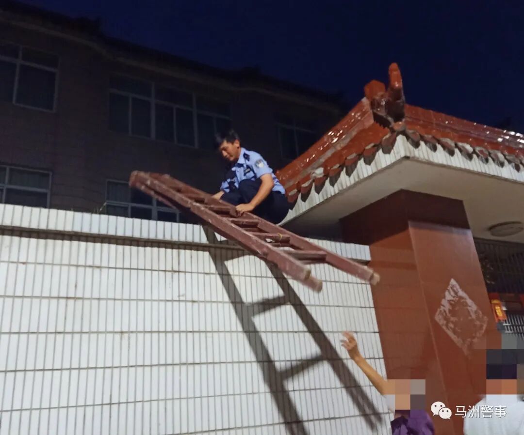 冯峰看到了这一幕,连忙上前,在问清楚情况之后,立即到附近邻居家借来另一把梯子,先解救了困在围墙上的朱大爷。在征得朱大爷的同意后,民警冯峰翻爬上梯子,越过院墙,跳入院内,然后从院子内打开了大门。