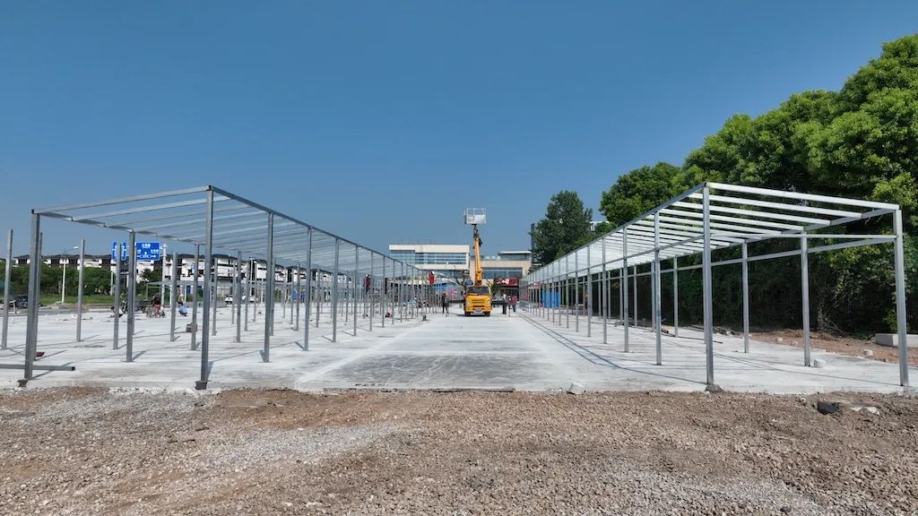 港城夜市新址位于天街东侧 占地13余亩,周围交通顺畅 自8月中旬动工建设以来 已完成地面硬质化、水电管线铺设等基础工程 以及店铺的钢结构搭建 目前 氛围布置和水电接通等各项配套设施的安装工作 进入最后冲刺阶段  # f! I2 R6 @" B9 l6 Z+ q