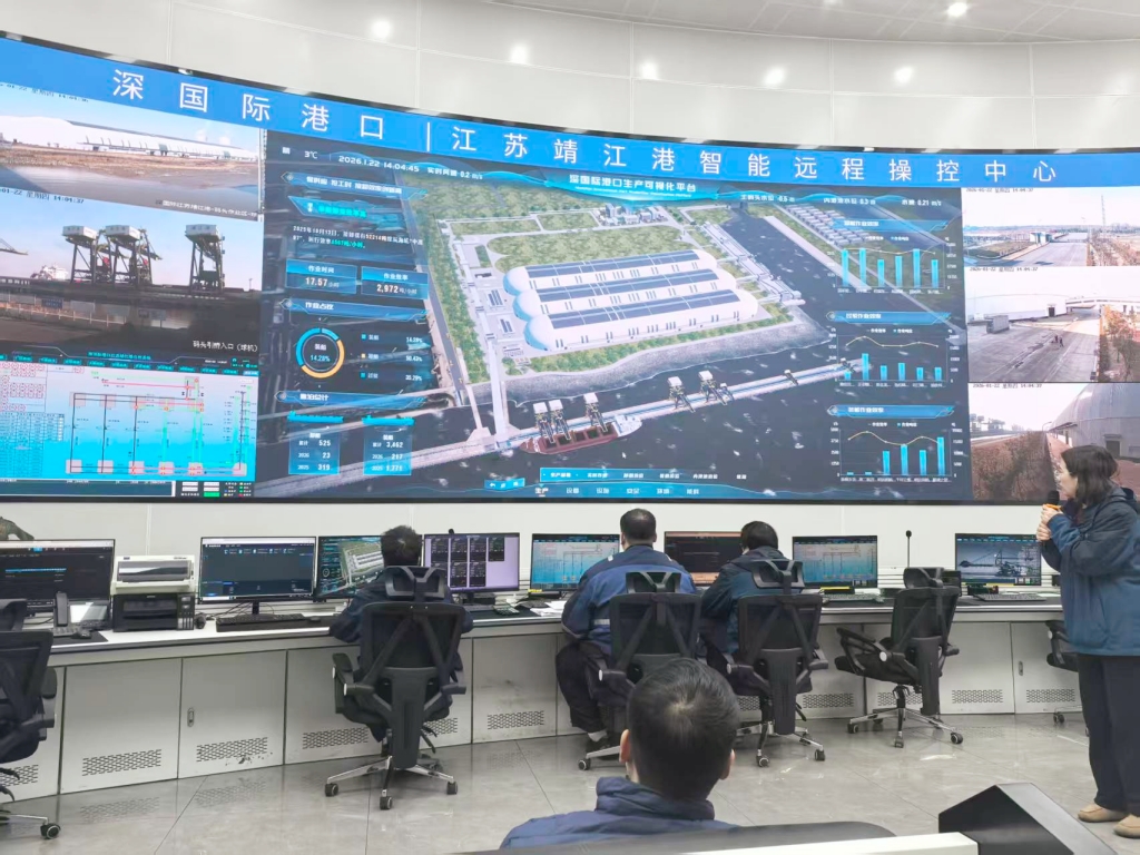 第三站:港口里的“智慧管家”来到深国际港口江苏靖江港,眼前景象再次让我们惊叹。巨大的全封闭大棚像一座座银色山脉——这是长江沿线首个全封闭散货码头,棚顶还能发电,环保又高效。 但最“聪明”的还是它的“大脑”。通过智能调度系统,卸一艘5万吨的货船最快只需14小时,效率惊人!你可能不知道,港口的高效运转,直接关系到电是否稳定、企业的成本是否降低。这个绿色智慧的港口,是靖江推动长江经济带高质量发展的生动写照。  第四站:车间里的“钢铁艺术家”