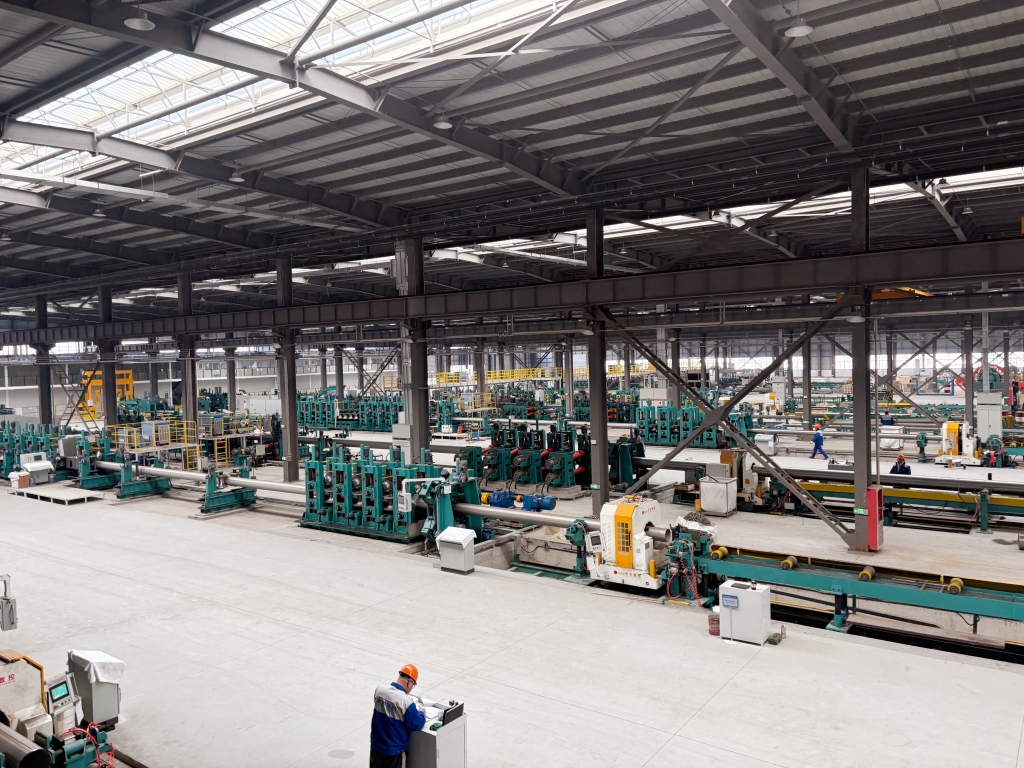 最后一站是德靖管道公司。在这里,坚硬的不锈钢被加工成各种规格的管道,像是“钢铁艺术品”。这些管道将用于石油化工、新能源等国家重点项目。 工厂里,自动化生产线有序运转,技术工人专注操控。它所在的青山产业园,正在形成从材料到成品的完整产业链。这种集群式发展,不仅能让企业竞争力更强,还能带动更多就业,让靖江的制造业根基更加坚实。