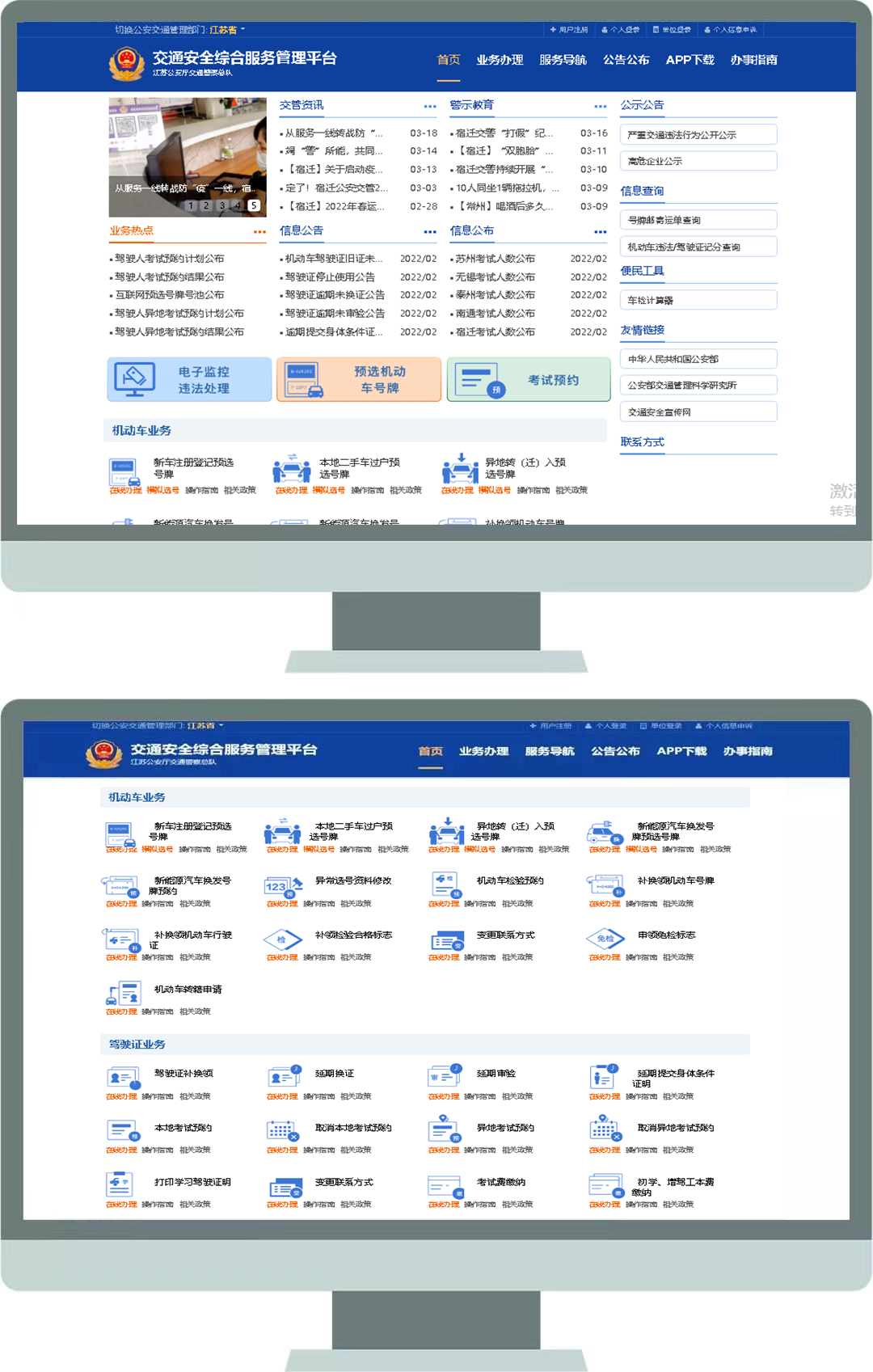 登录交通安全综合服务管理平台(https://js.122.gov.cn/),进入“业务办理”页面后,选择所需办理业务进行在线办理。