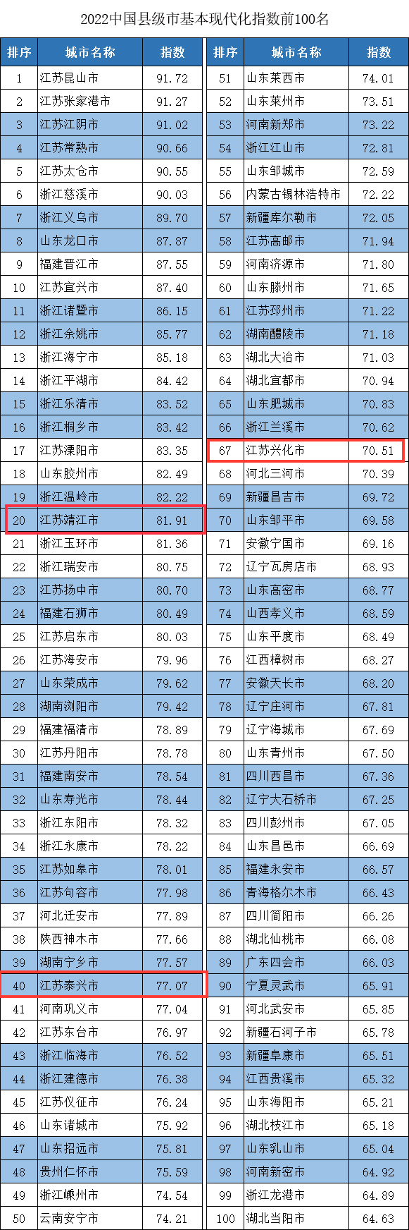 又一全国百强榜单公布!靖江排名第20位!