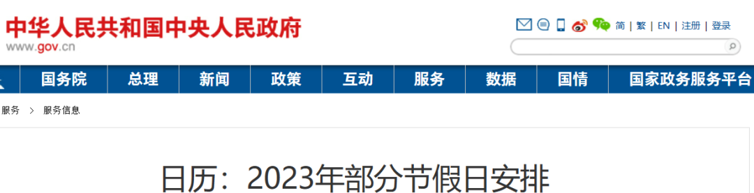 根据近日发布的2023年部分节假日安排的通知