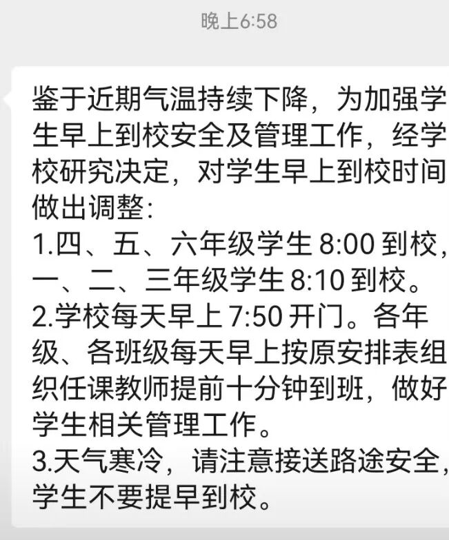 ( v) `! C2 R( [ 靖江多所学校发布通知 调整了上学时间